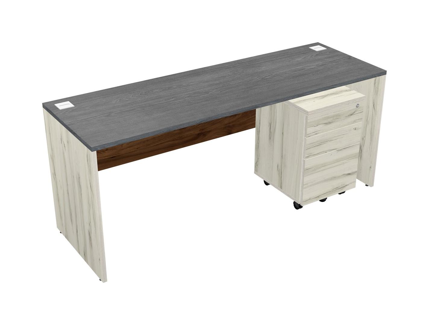 Grey Rectangular Office Desk Plus Heinne Holz Wooden Mobile Drawers