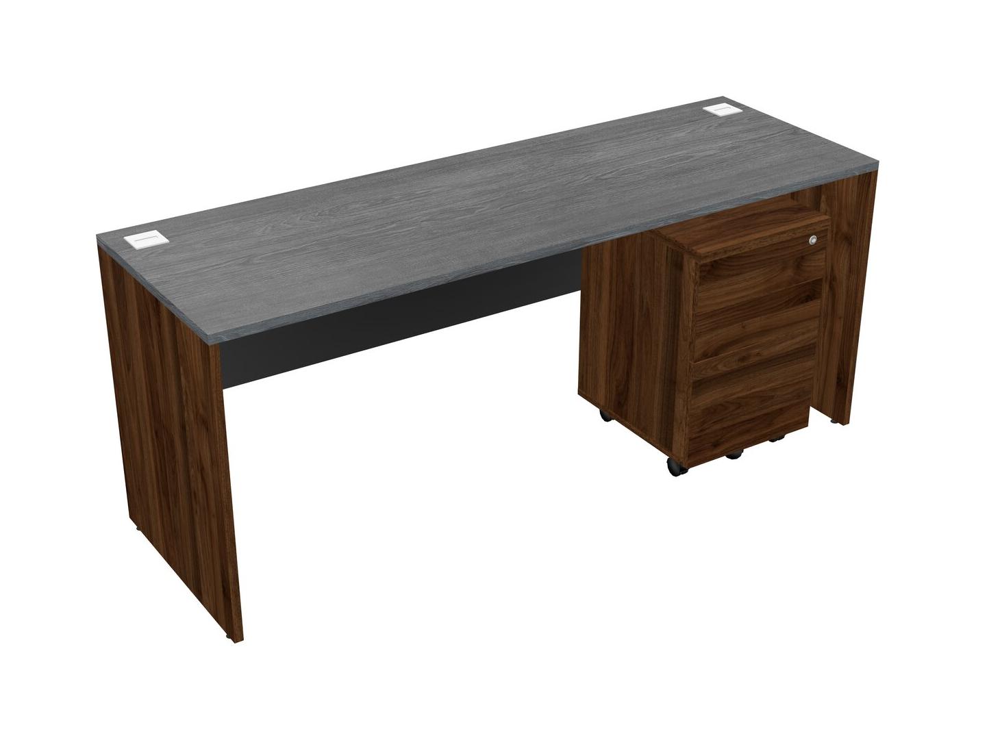 Grey Rectangular Office Desk Plus Columbia Walnut Wooden Mobile Drawers
