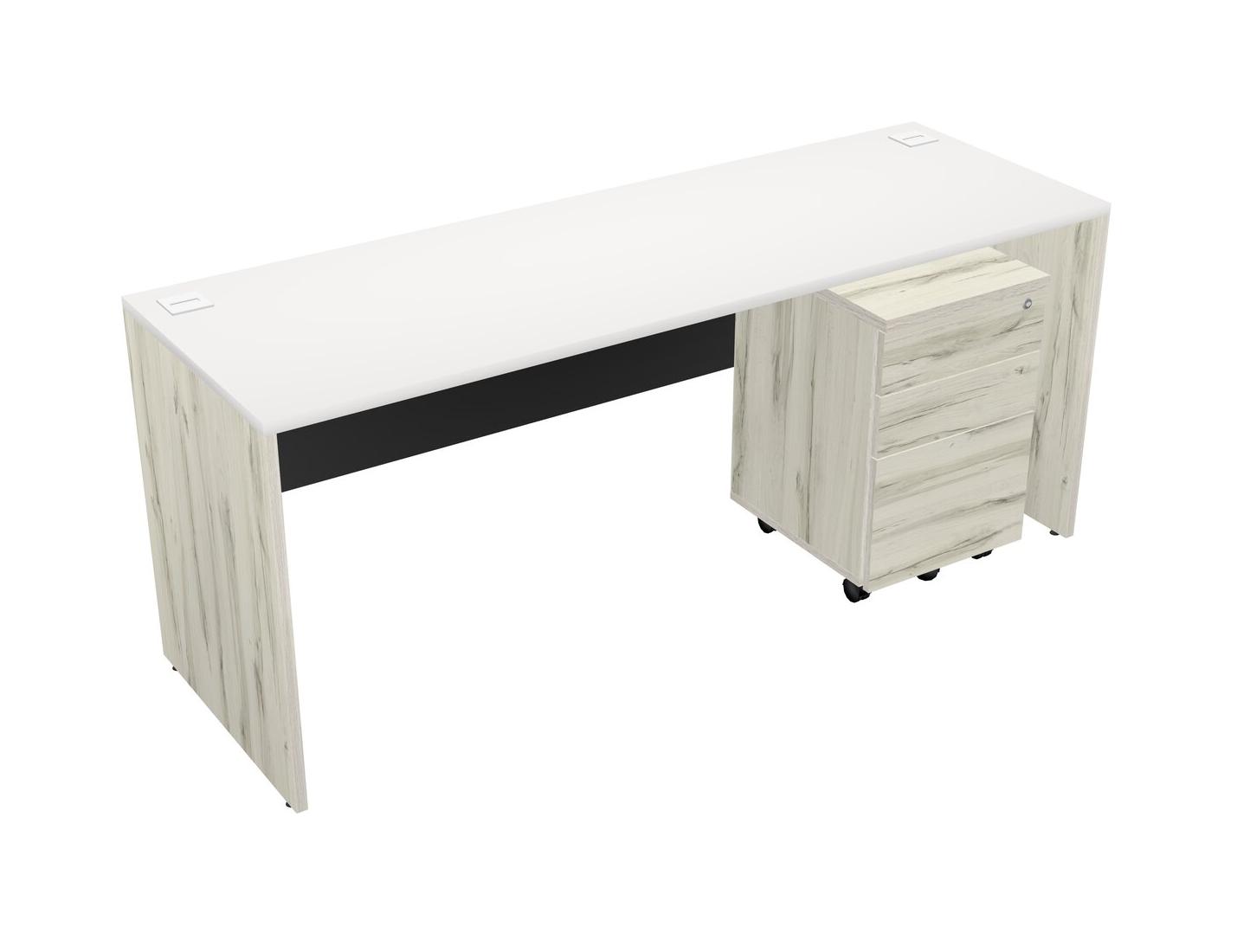 White Rectangular Office Desk Plus Heinne Holz Wooden Mobile Drawers