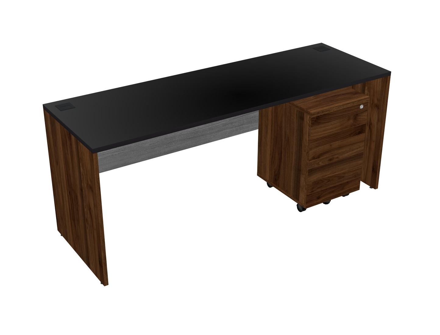 Black Rectangular Office Desk Plus Columbia Walnut Wooden Mobile Drawers