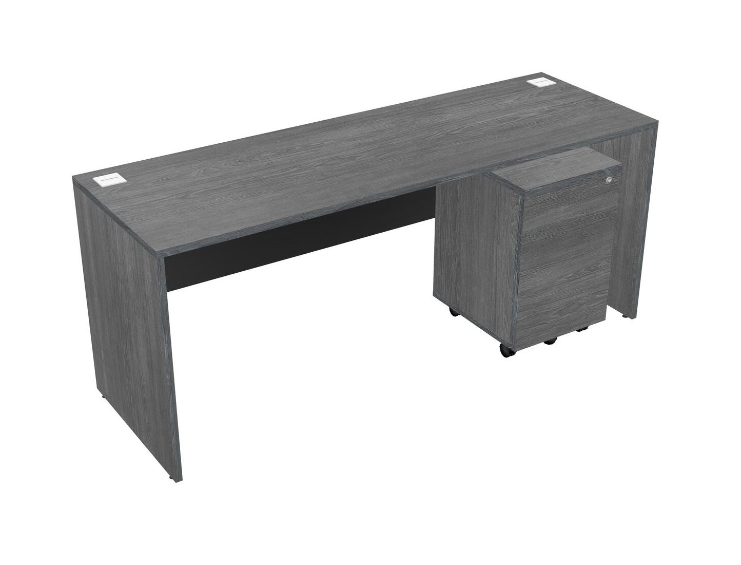 Grey Rectangular Office Desk Plus Grey Wooden Mobile Drawers