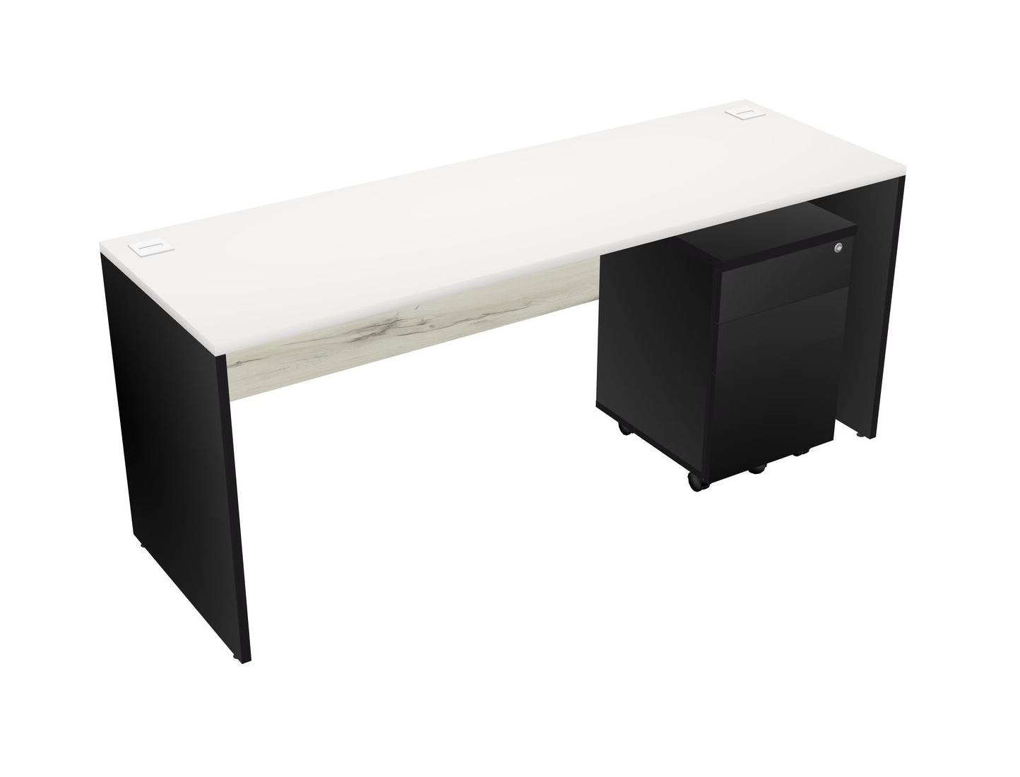 White Rectangular Office Desk Plus Black Wooden Mobile Drawers