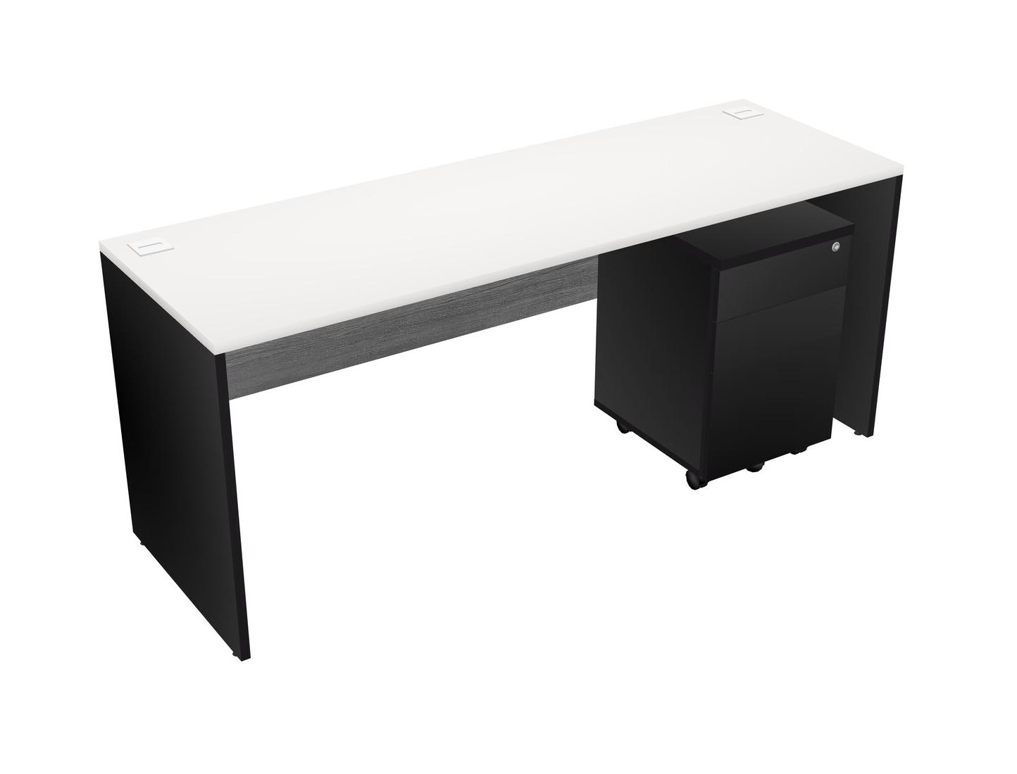 White Rectangular Office Desk Plus Black Wooden Mobile Drawers
