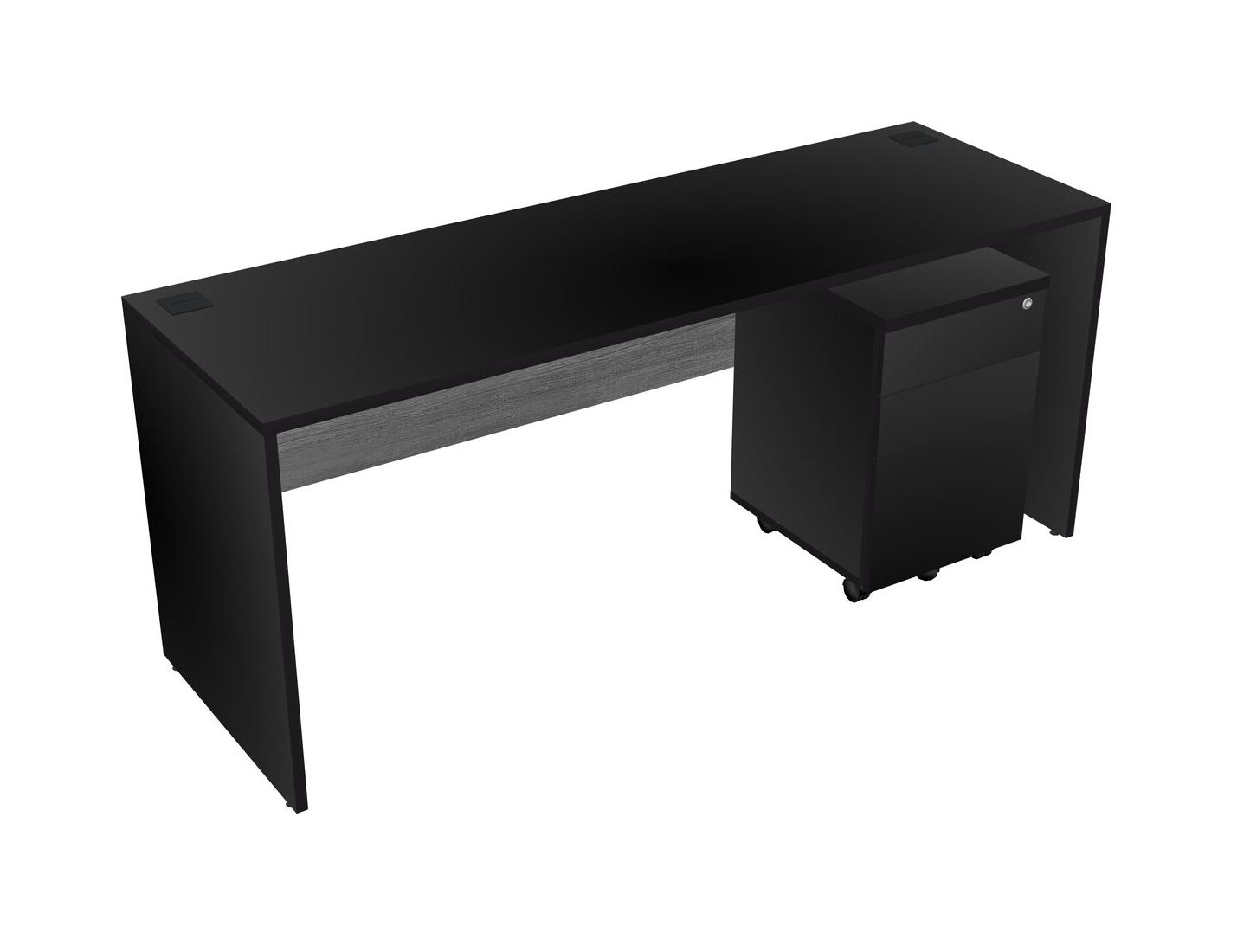 Black Rectangular Office Desk Plus Black Wooden Mobile Drawers