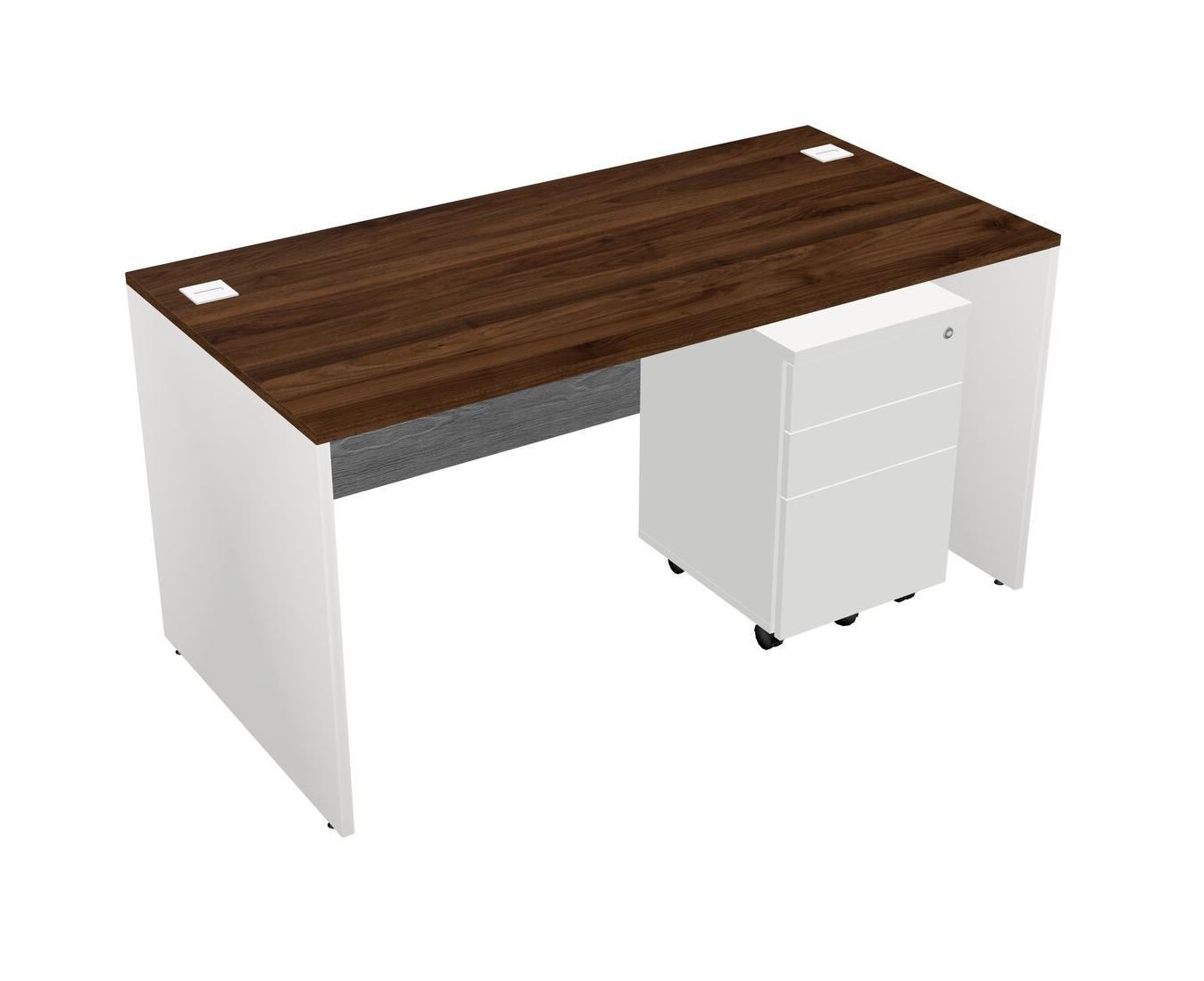 Columbia Walnut Rectangular Office Desk Plus White Wooden Mobile Drawers