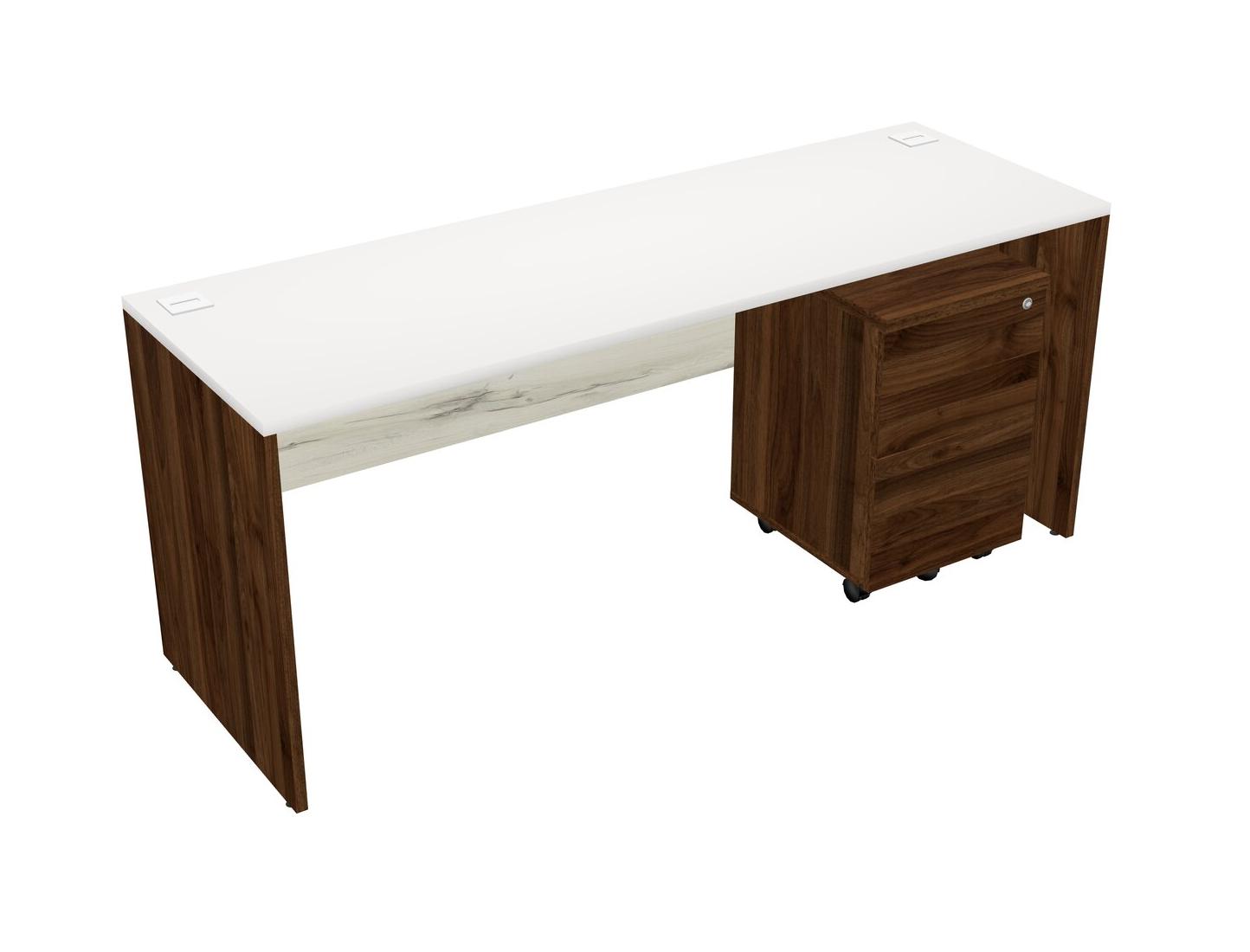 White Rectangular Office Desk Plus Columbia Walnut Wooden Mobile Drawers