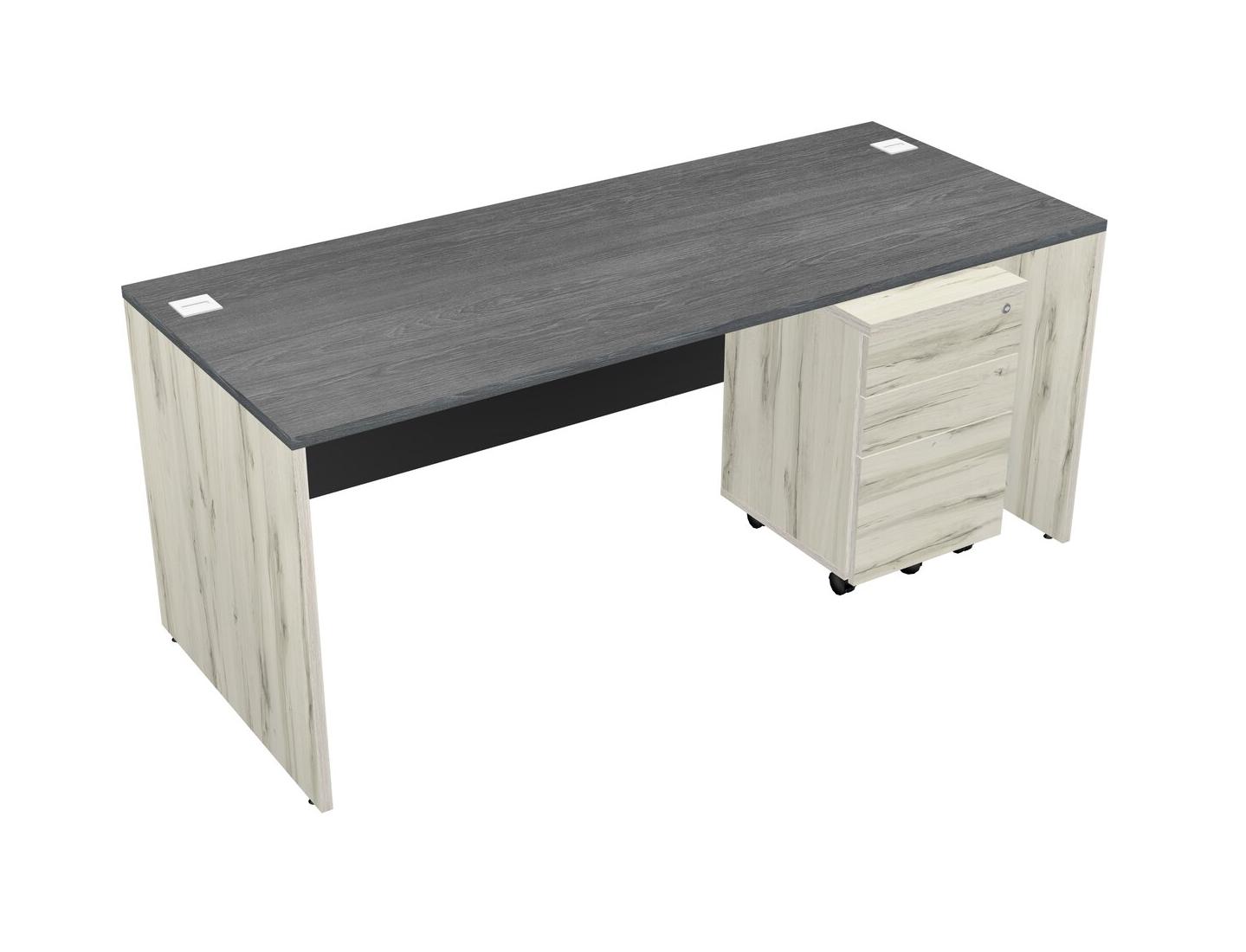 Grey Rectangular Office Desk Plus Heinne Holz Wooden Mobile Drawers