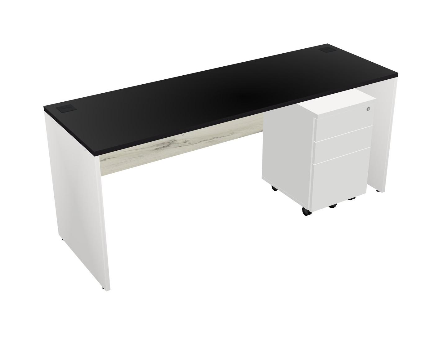 Black Rectangular Office Desk Plus White Wooden Mobile Drawers