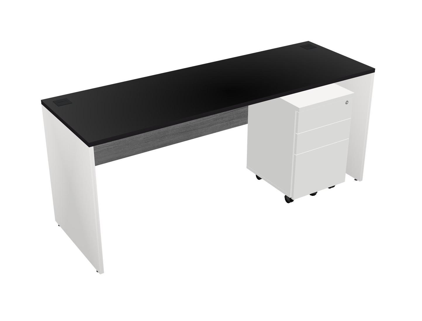 Black Rectangular Office Desk Plus White Wooden Mobile Drawers