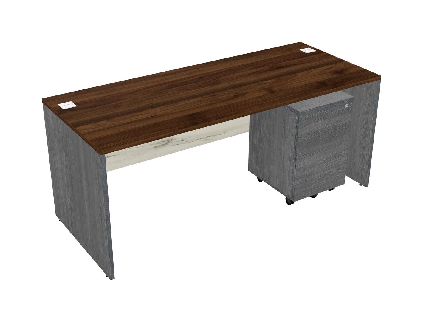 Columbia Walnut Rectangular Office Desk Plus Grey Wooden Mobile Drawers
