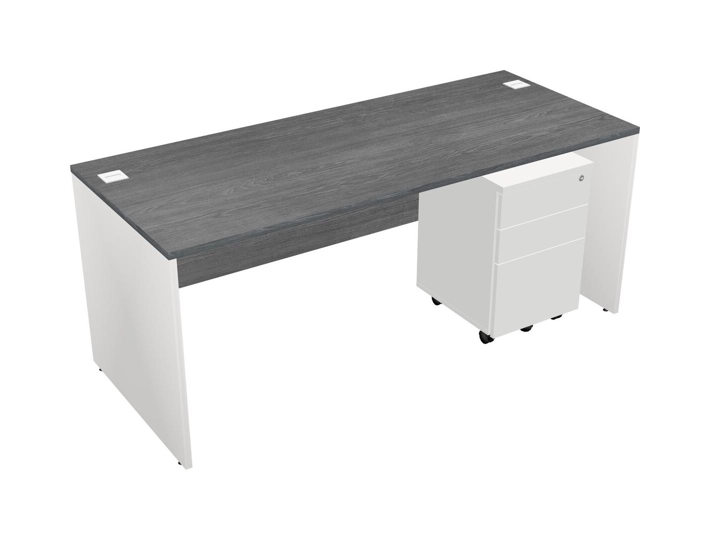 Grey Rectangular Office Desk Plus White Wooden Mobile Drawers