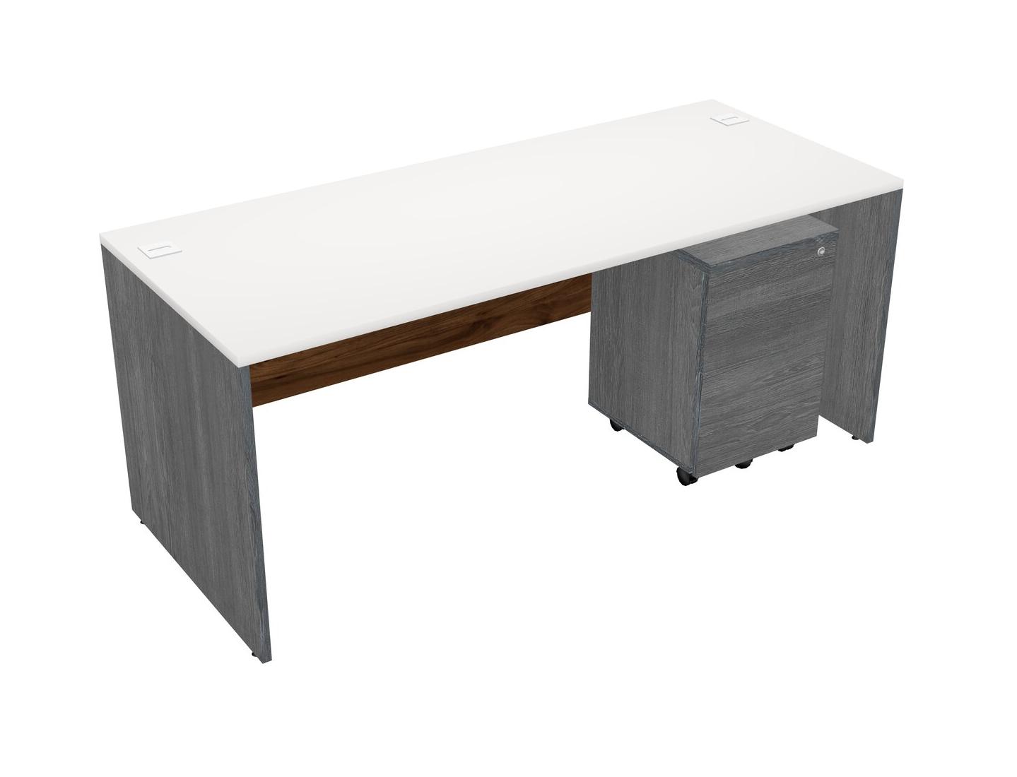 White Rectangular Office Desk Plus Grey Wooden Mobile Drawers