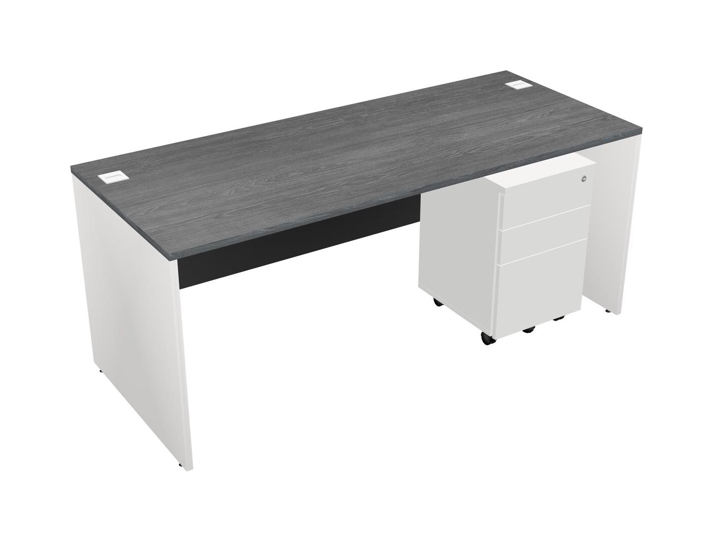 Grey Rectangular Office Desk Plus White Wooden Mobile Drawers