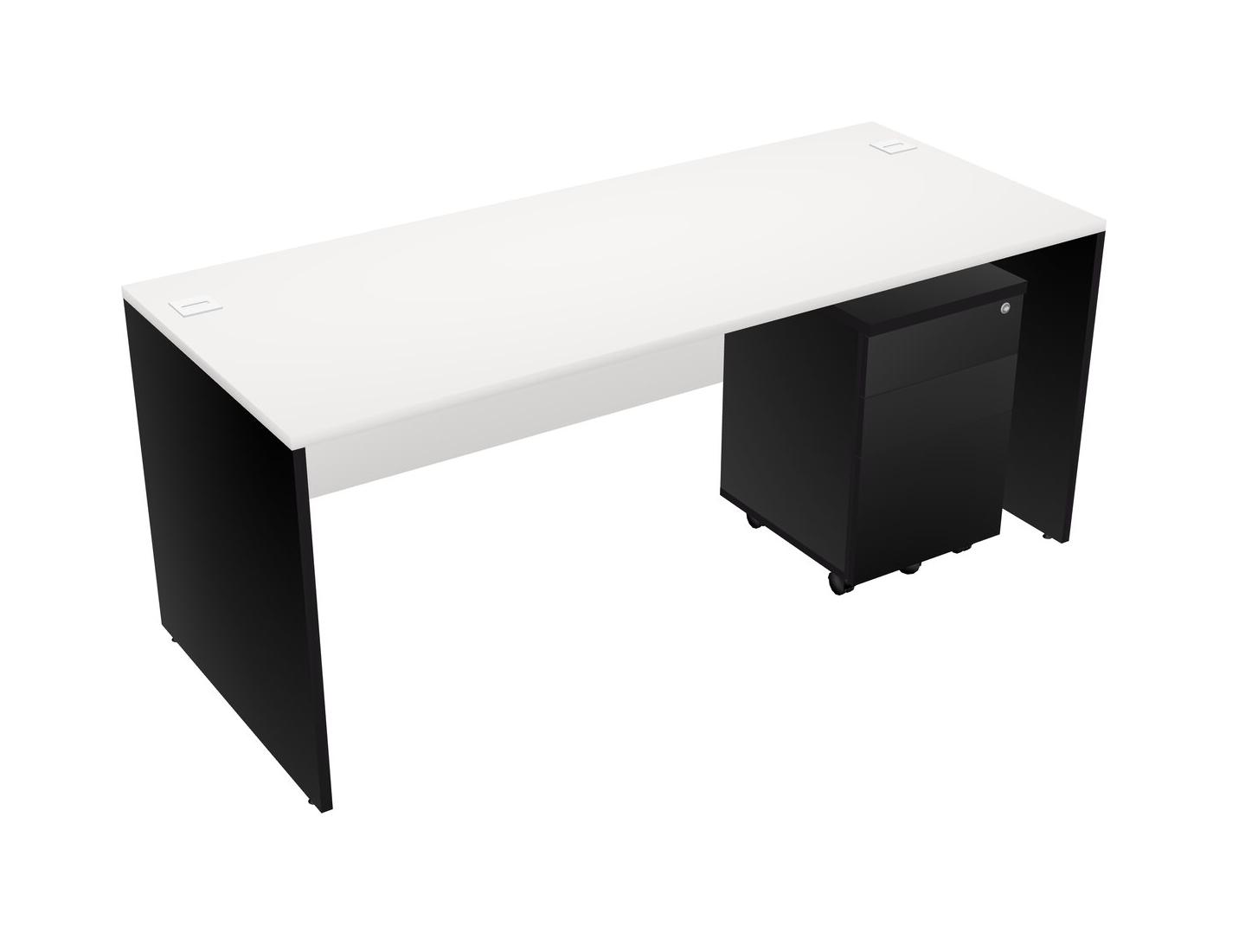 White Rectangular Office Desk Plus Black Wooden Mobile Drawers