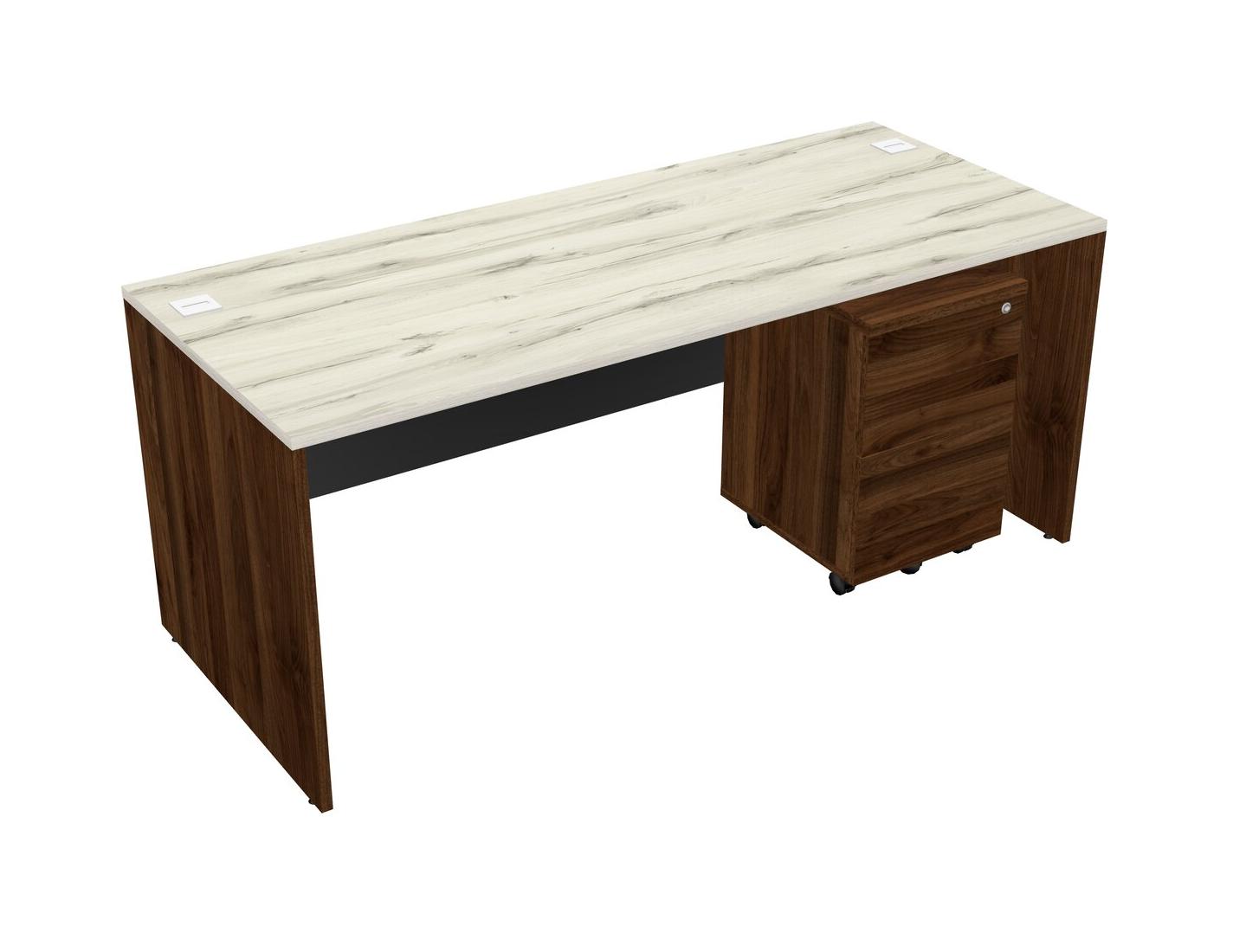 Heinne Holz Rectangular Office Desk Plus Columbia Walnut Wooden Mobile Drawers