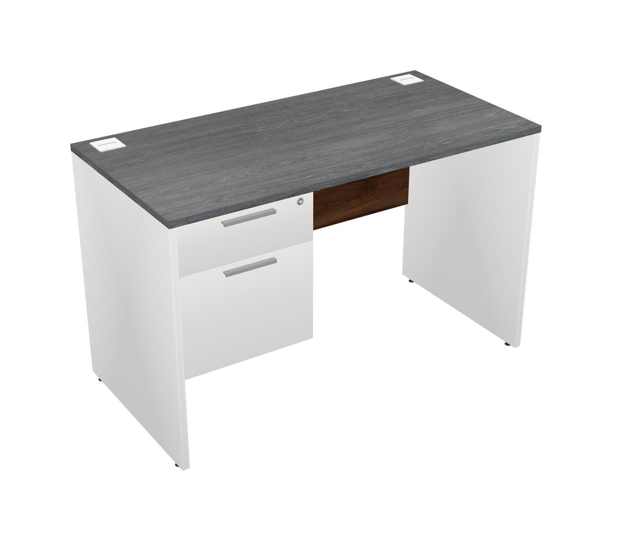 Grey Rectangular Office Desk Plus White Hanging Drawers