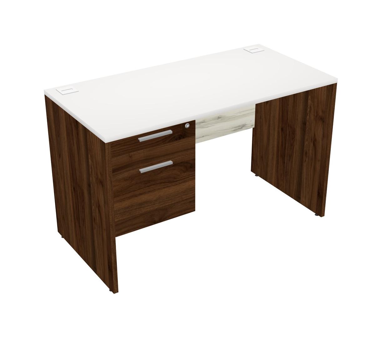 White Rectangular Office Desk Plus Columbia Walnut Hanging Drawers