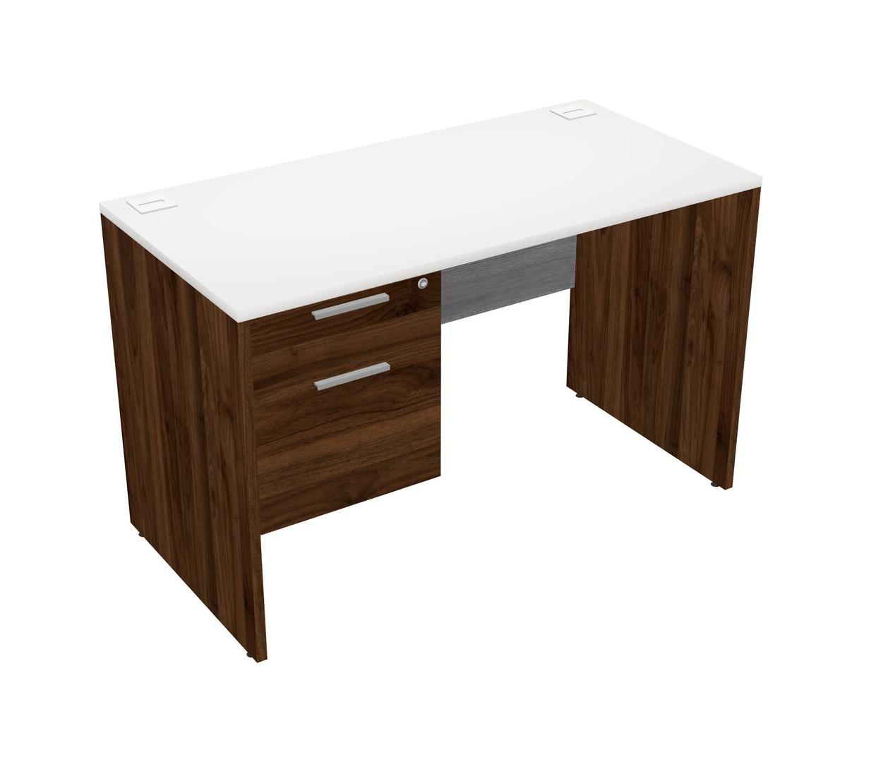 White Rectangular Office Desk Plus Columbia Walnut Hanging Drawers