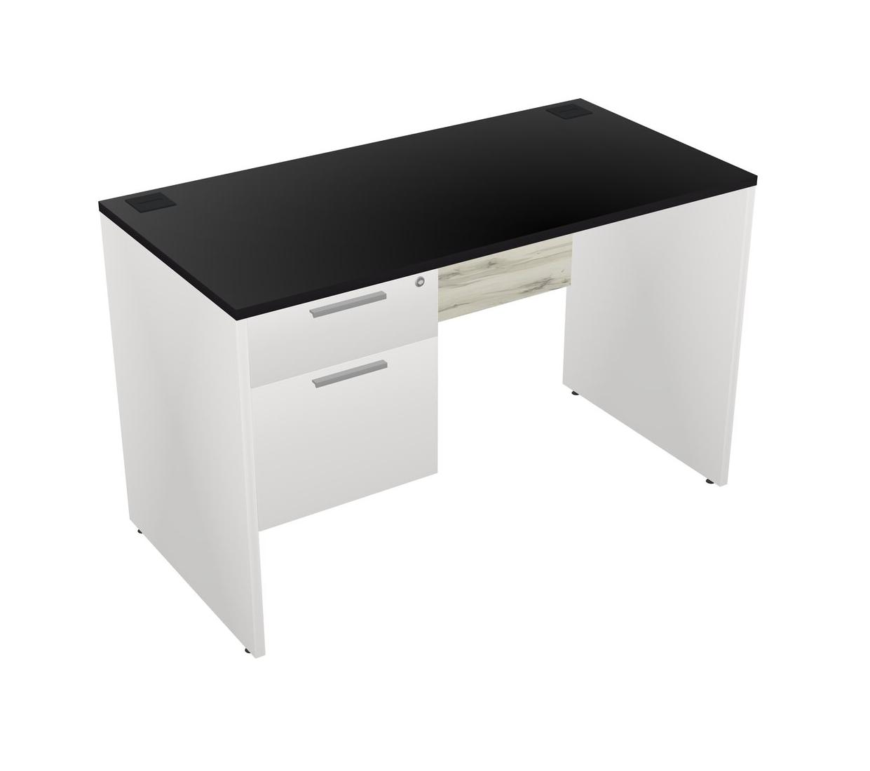 Black Rectangular Office Desk Plus White Hanging Drawers