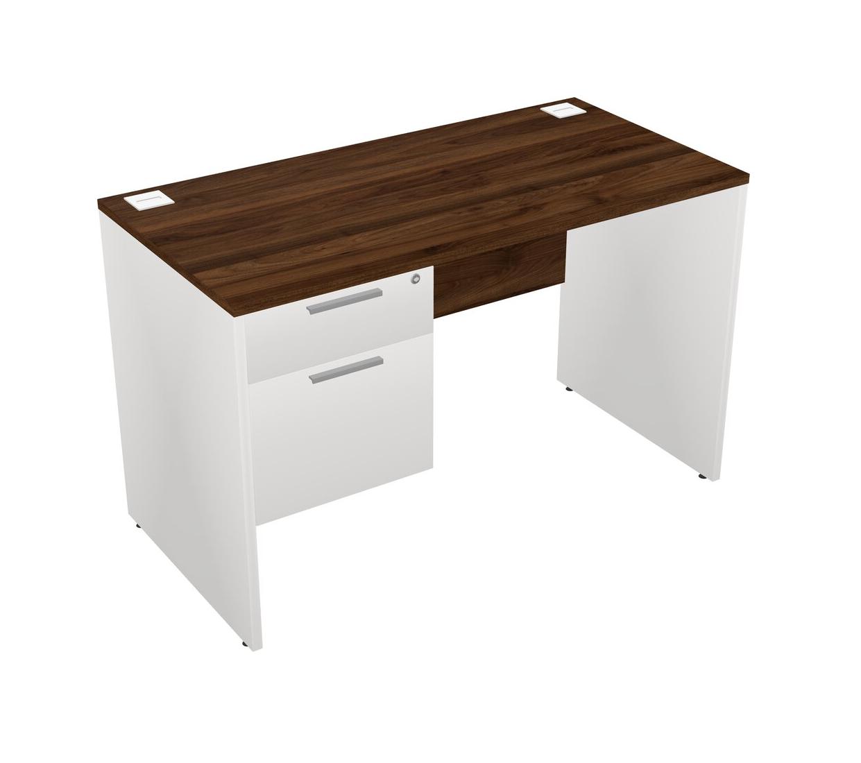 Columbia Walnut Rectangular Office Desk Plus White Hanging Drawers