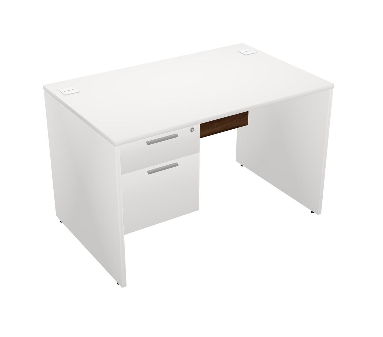 White Rectangular Office Desk Plus White Hanging Drawers