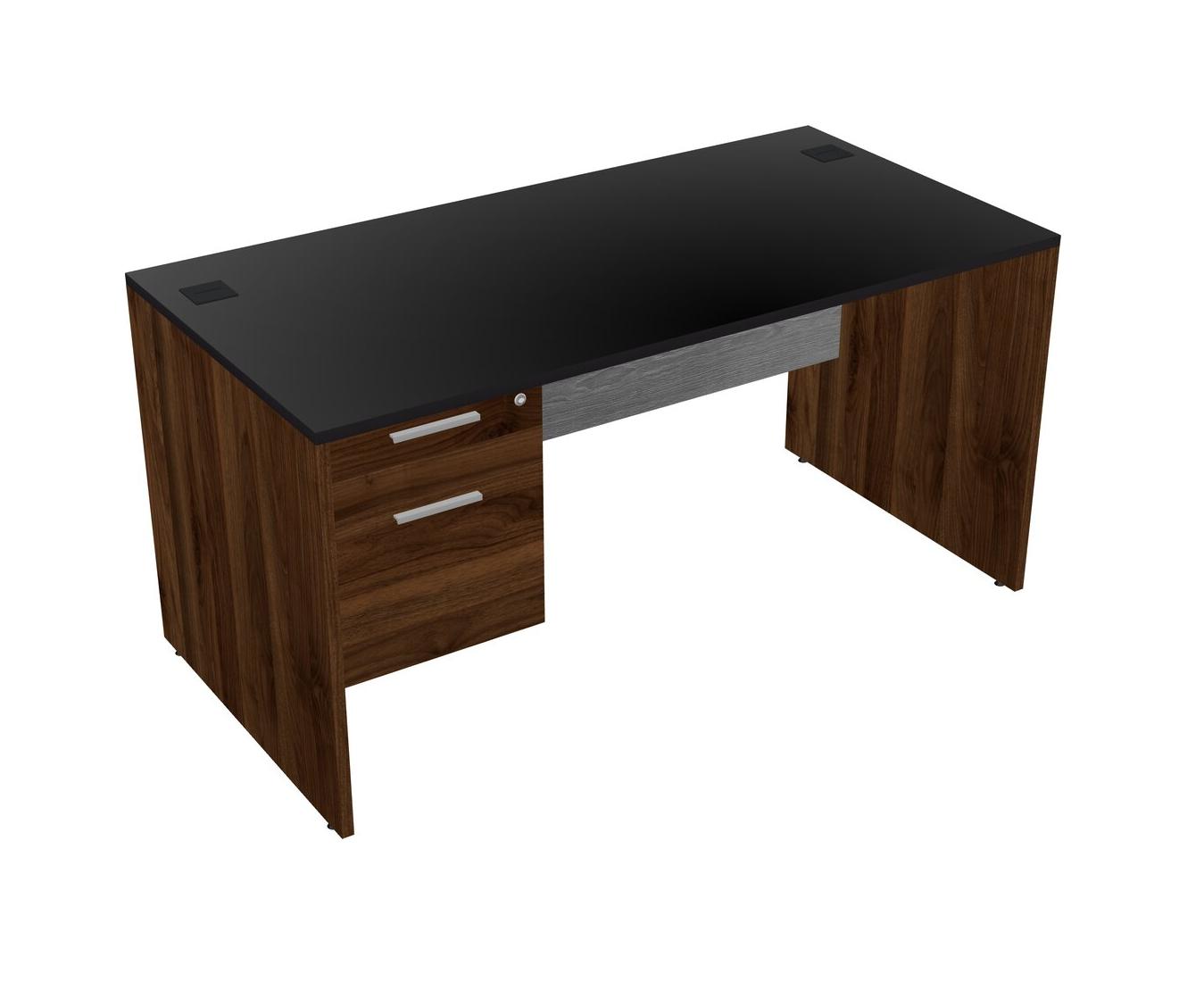 Black Rectangular Office Desk Plus Columbia Walnut Hanging Drawers