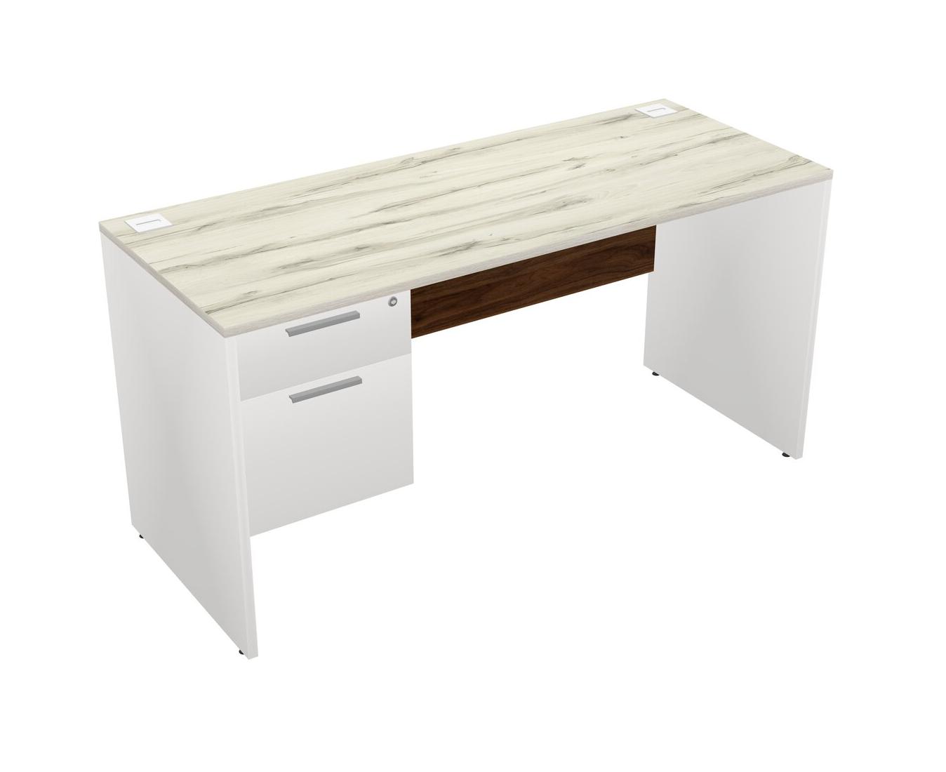 Heinne Holz Rectangular Office Desk Plus White Hanging Drawers