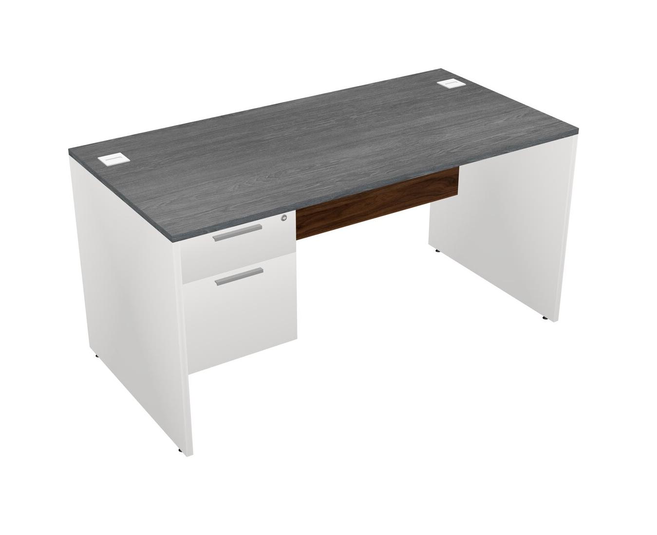 Grey Rectangular Office Desk Plus White Hanging Drawers