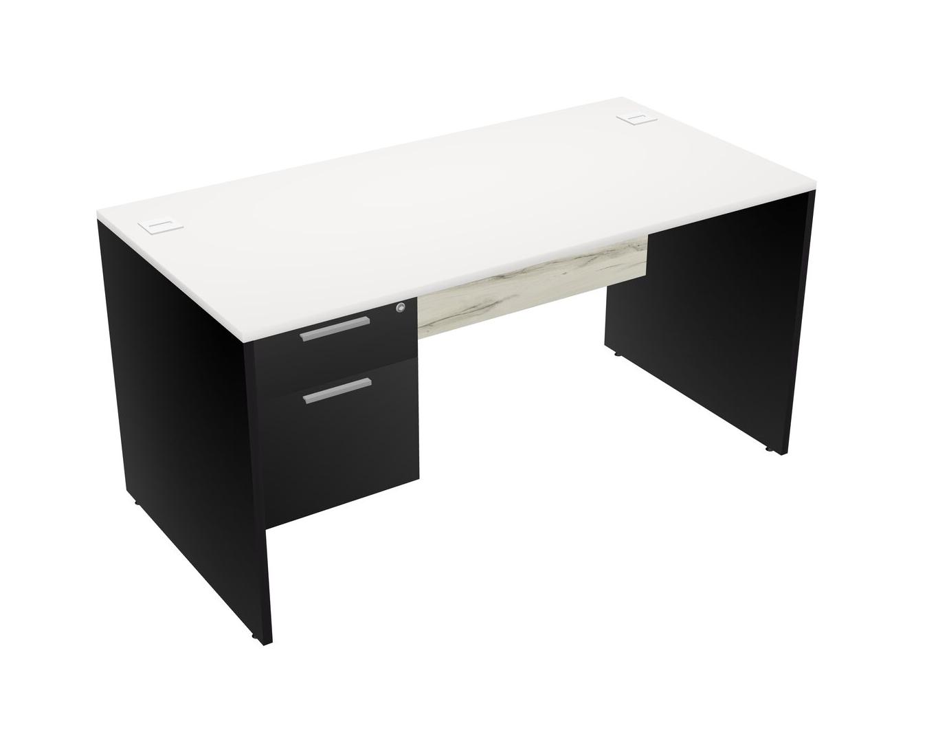 White Rectangular Office Desk Plus Black Hanging Drawers