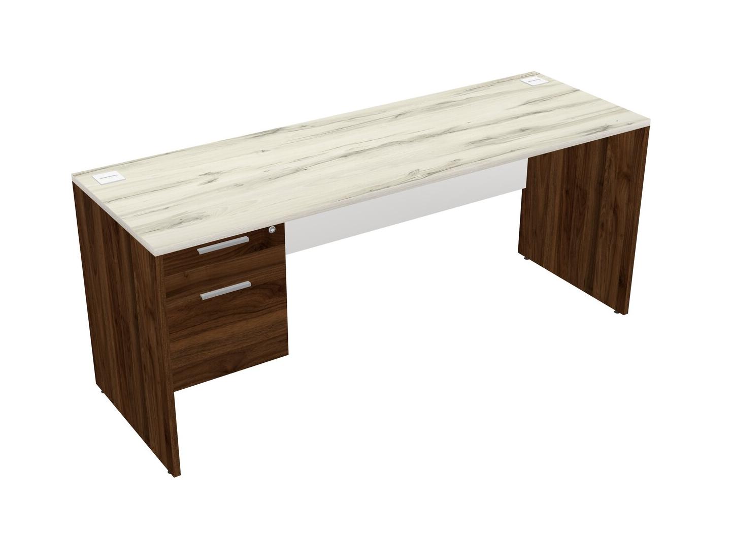Heinne Holz Rectangular Office Desk Plus Columbia Walnut Hanging Drawers