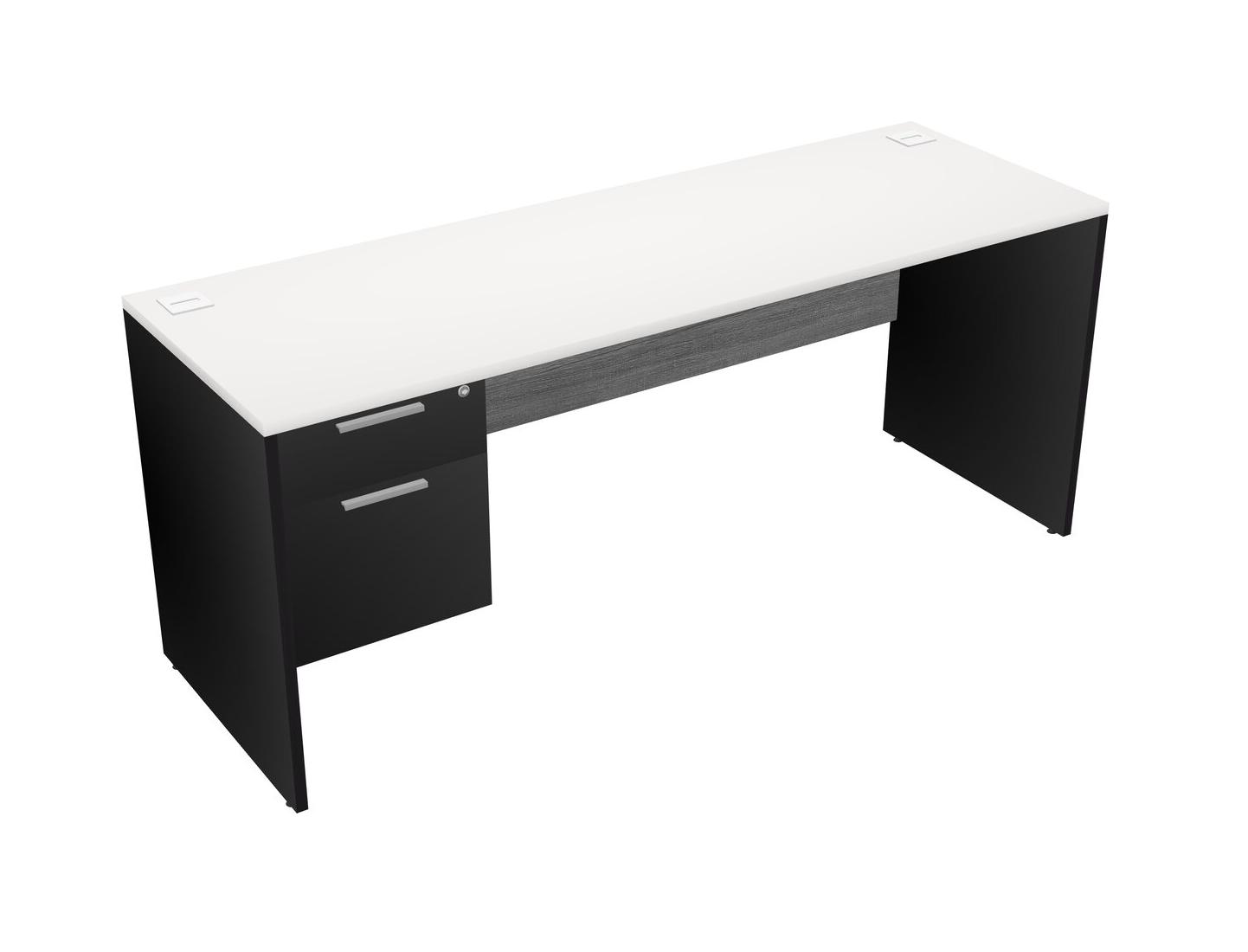 White Rectangular Office Desk Plus Black Hanging Drawers
