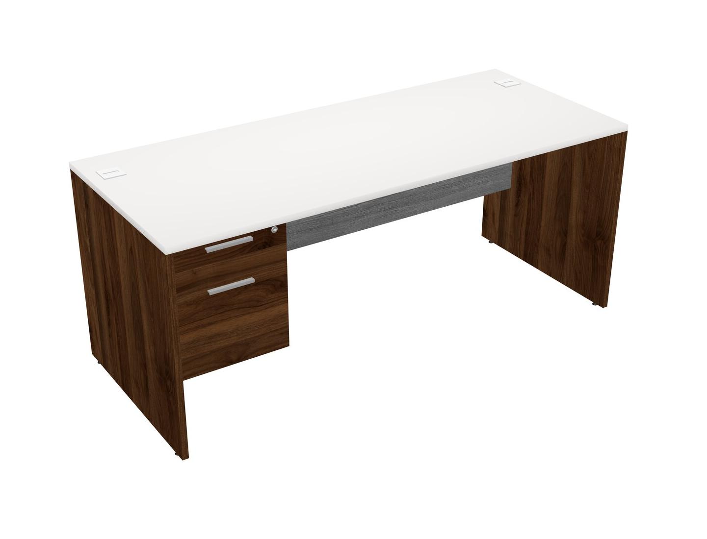 White Rectangular Office Desk Plus Columbia Walnut Hanging Drawers