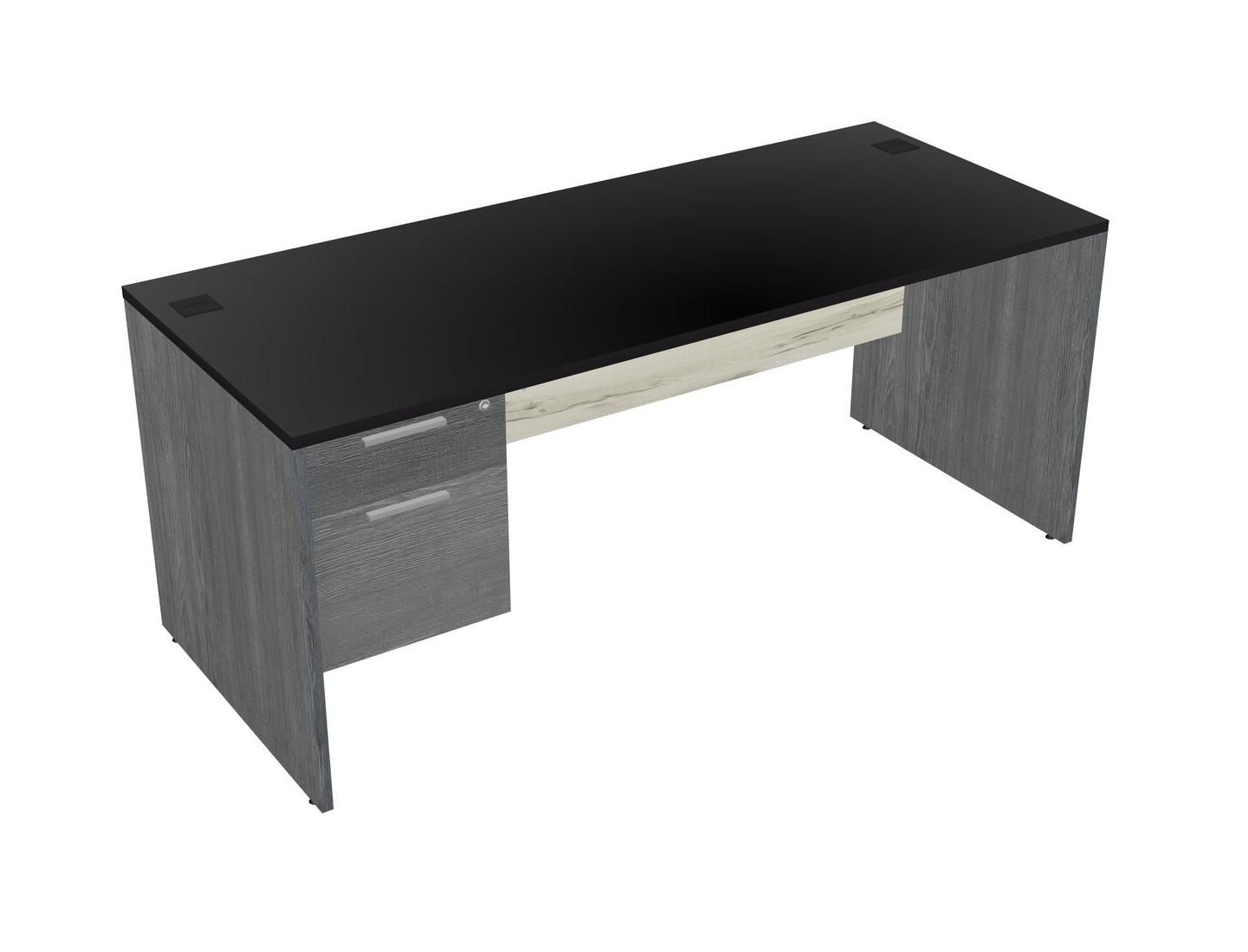 Black Rectangular Office Desk Plus Grey Hanging Drawers