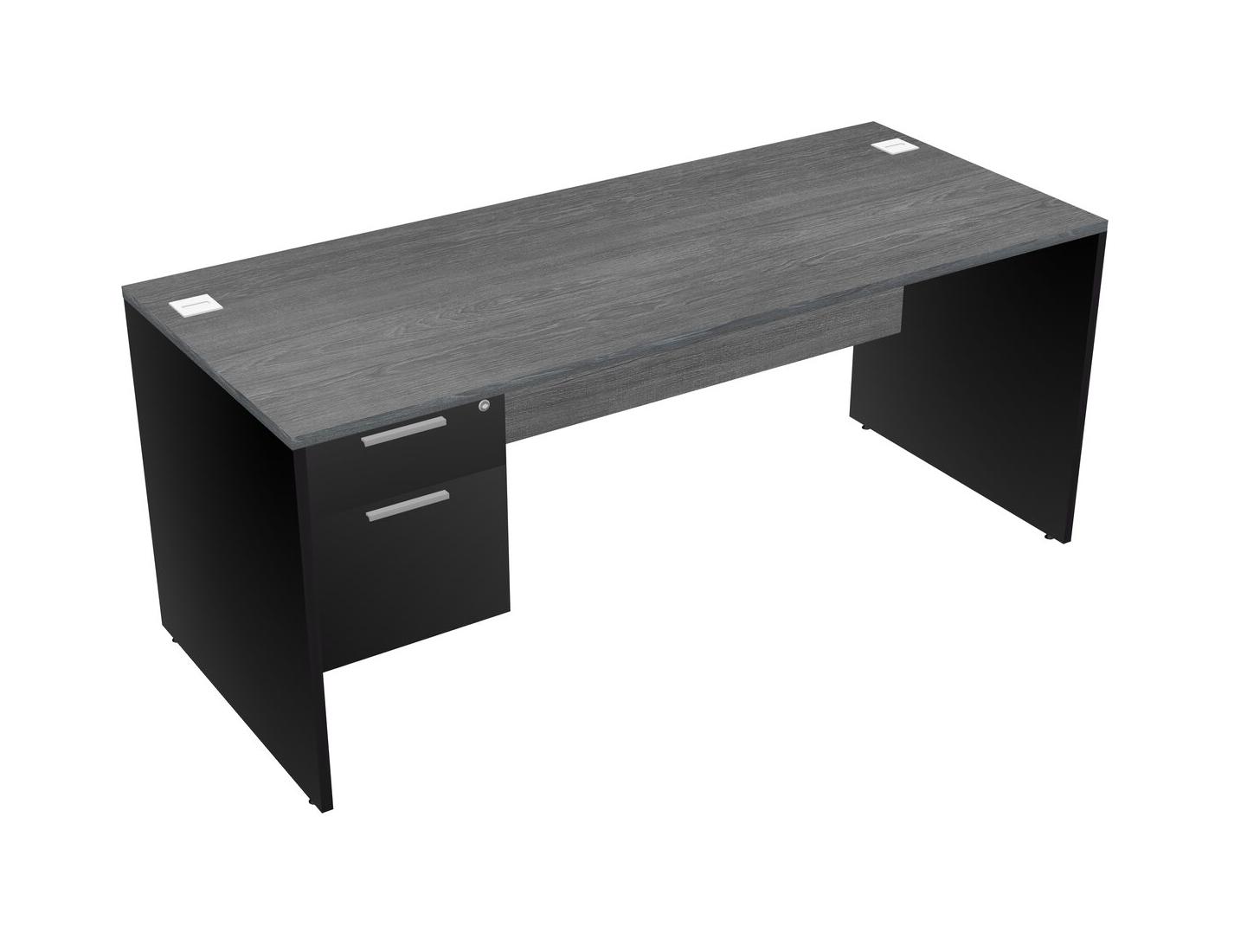 Grey Rectangular Office Desk Plus Black Hanging Drawers