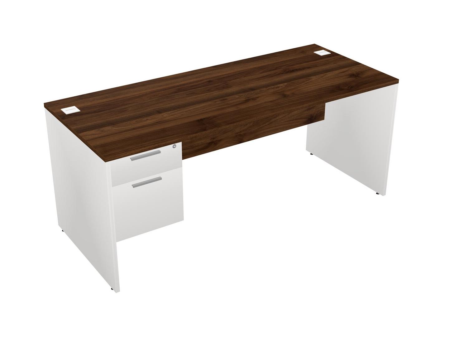 Columbia Walnut Rectangular Office Desk Plus White Hanging Drawers