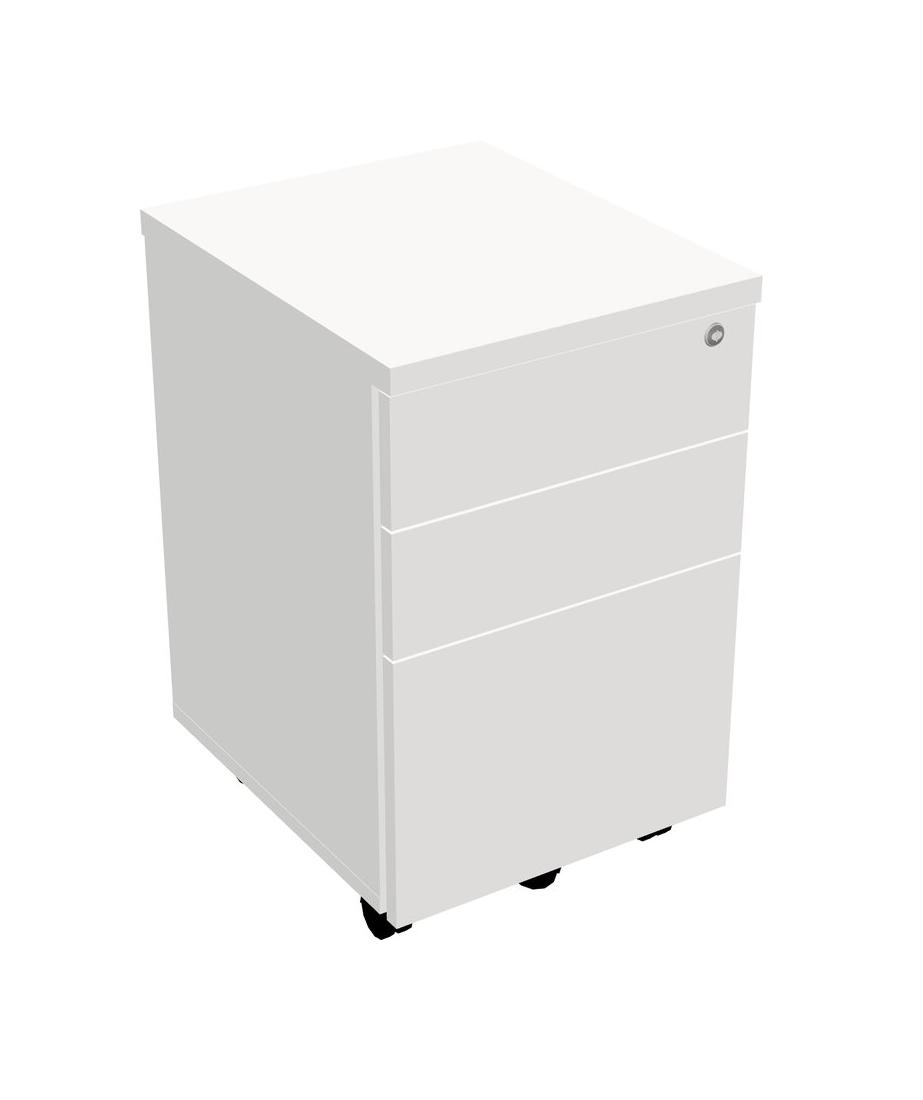 3-Drawer White Wooden Office Mobile Pedestal File Cabinet