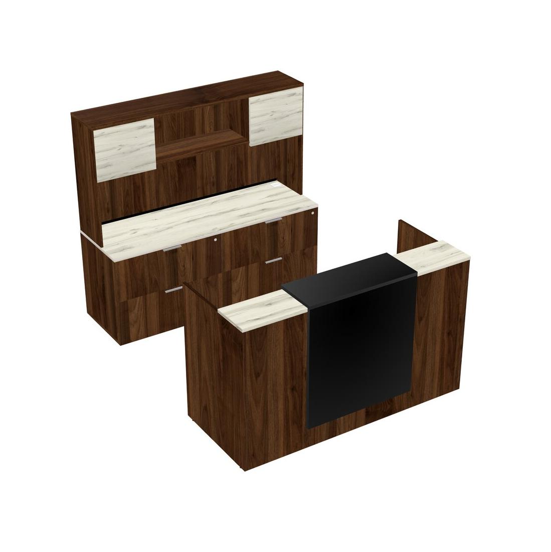 Heinne Holz Modular Reception Desk + Lateral File Cabinet Credenza + Hutch + Wooden Mobile Drawers + Floating Counter