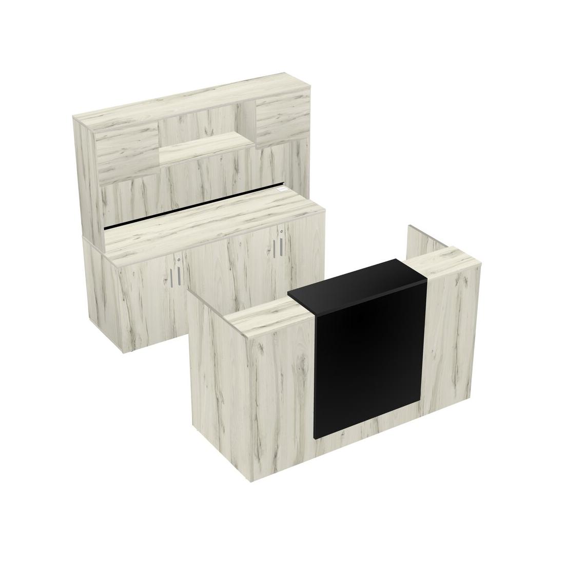 Heinne Holz Modular Reception Desk + Storage Cabinet Credenza + Hutch + Wooden Mobile Drawers + Floating Counter