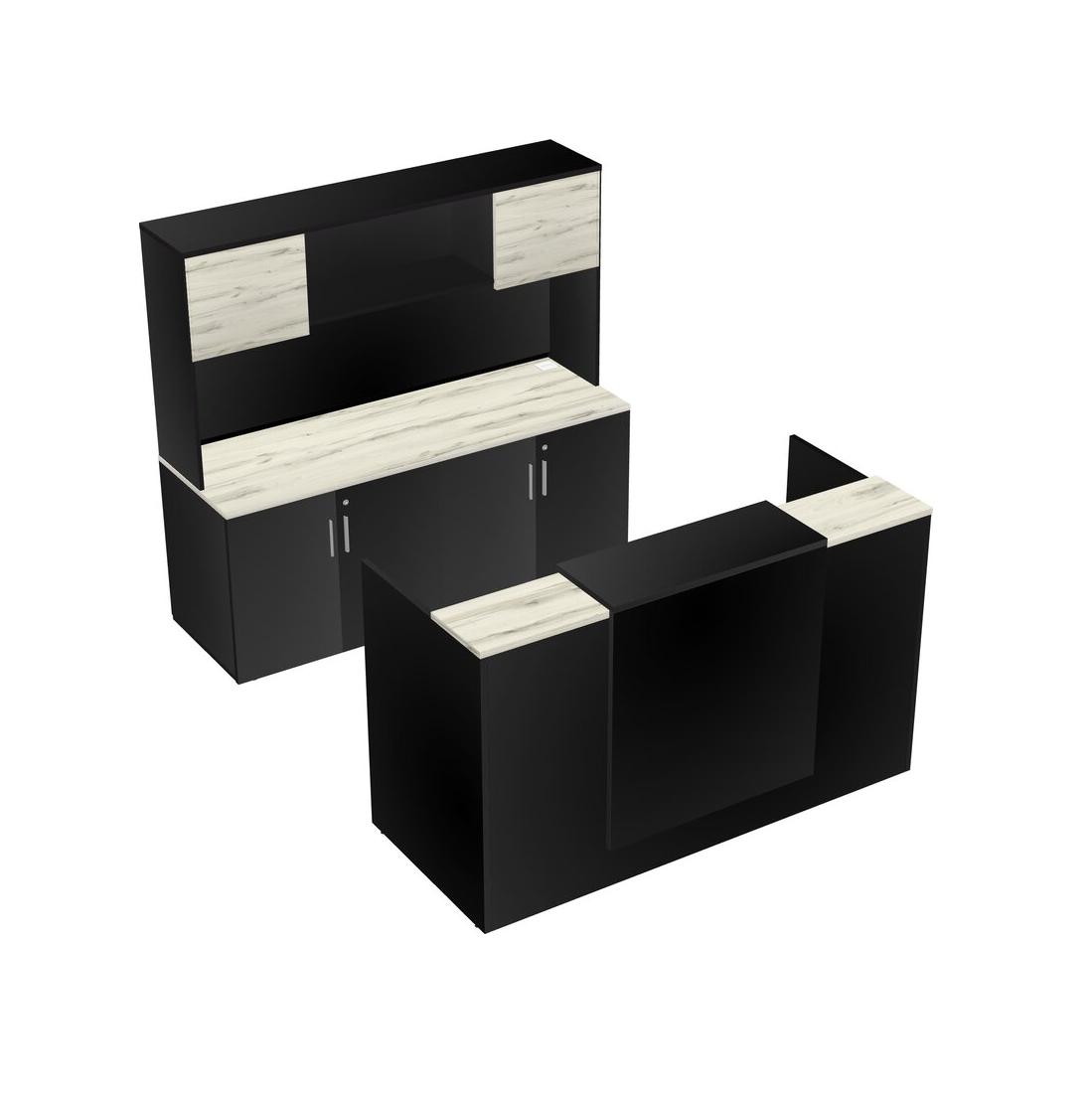 Heinne Holz Modular Reception Desk + Storage Cabinet Credenza + Hutch + Wooden Mobile Drawers + Floating Counter