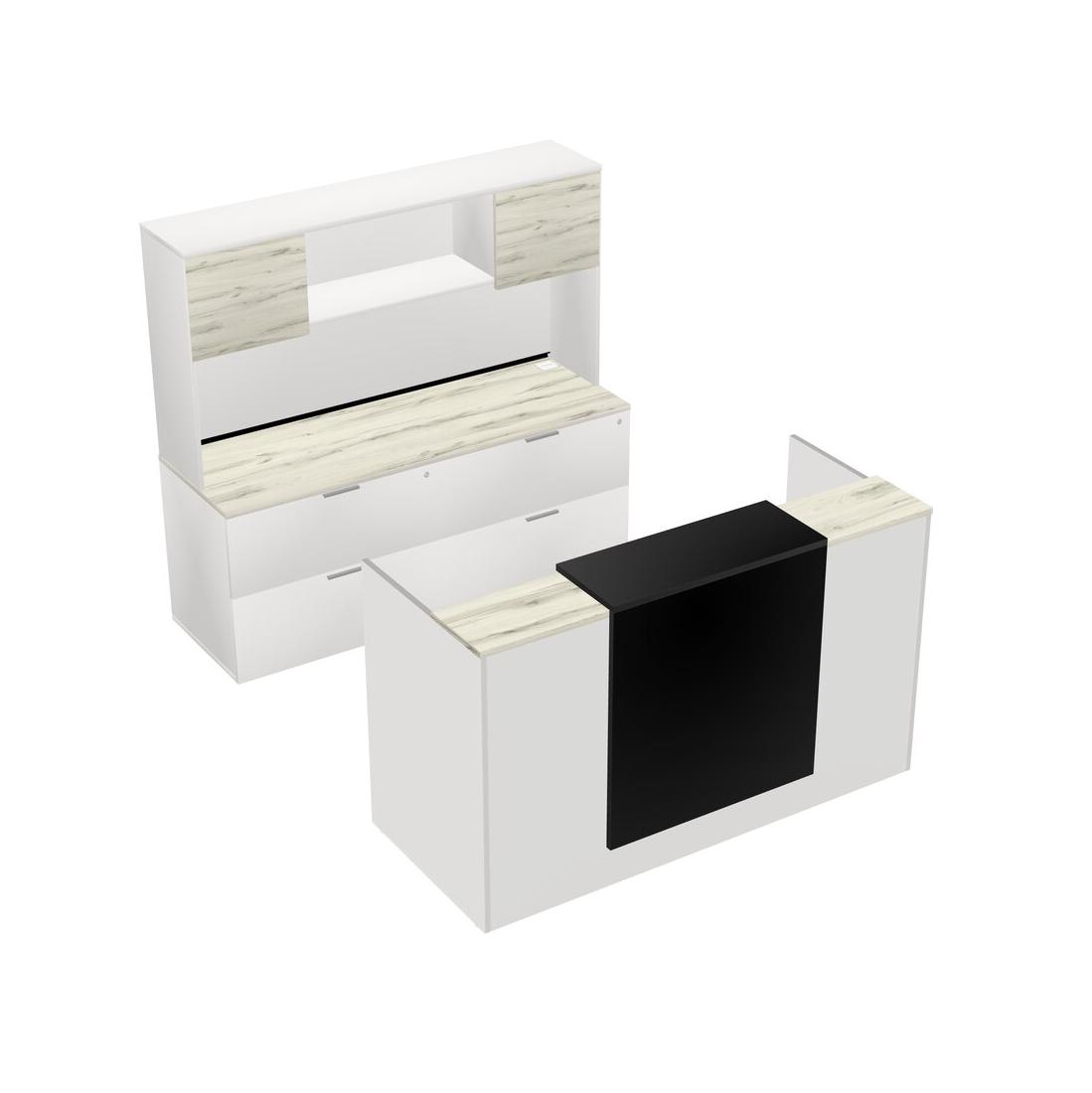 Heinne Holz Modular Reception Desk + Lateral File Cabinet Credenza + Hutch + Floating Counter