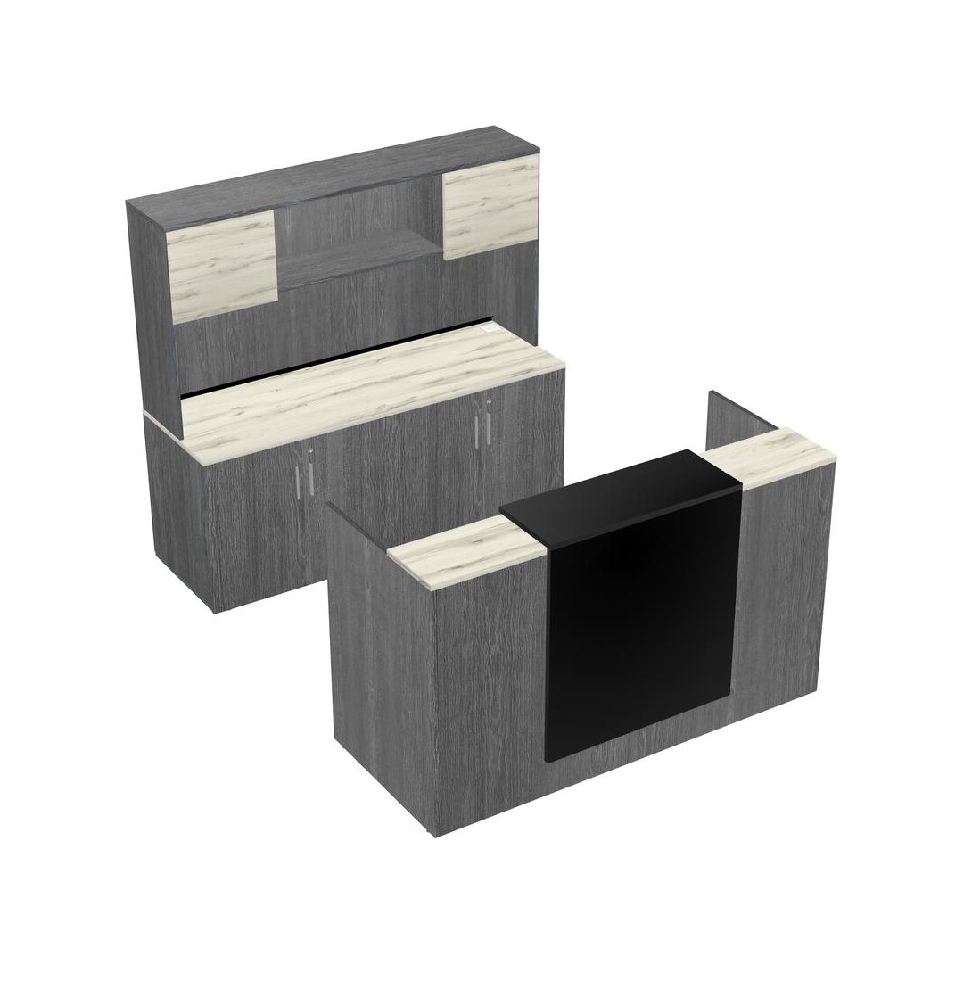 Heinne Holz Modular Reception Desk + Storage Cabinet Credenza + Hutch + Floating Counter