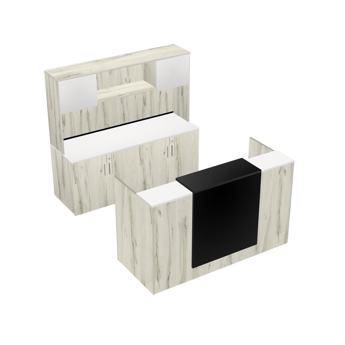 White Modular Reception Desk + Storage Cabinet Credenza + Hutch + Floating Counter