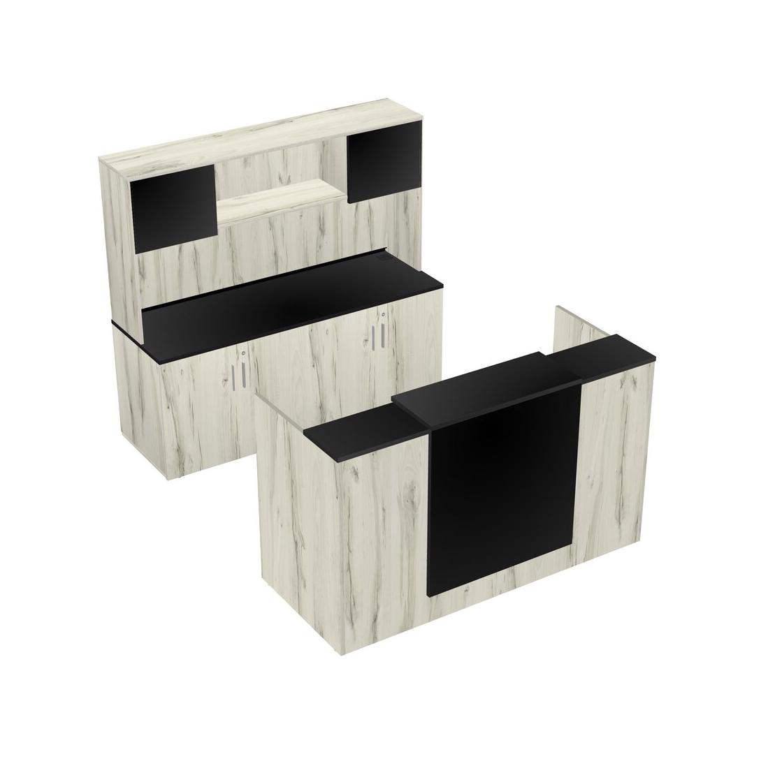 Black Modular Reception Desk + Storage Cabinet Credenza + Hutch + Floating Counter