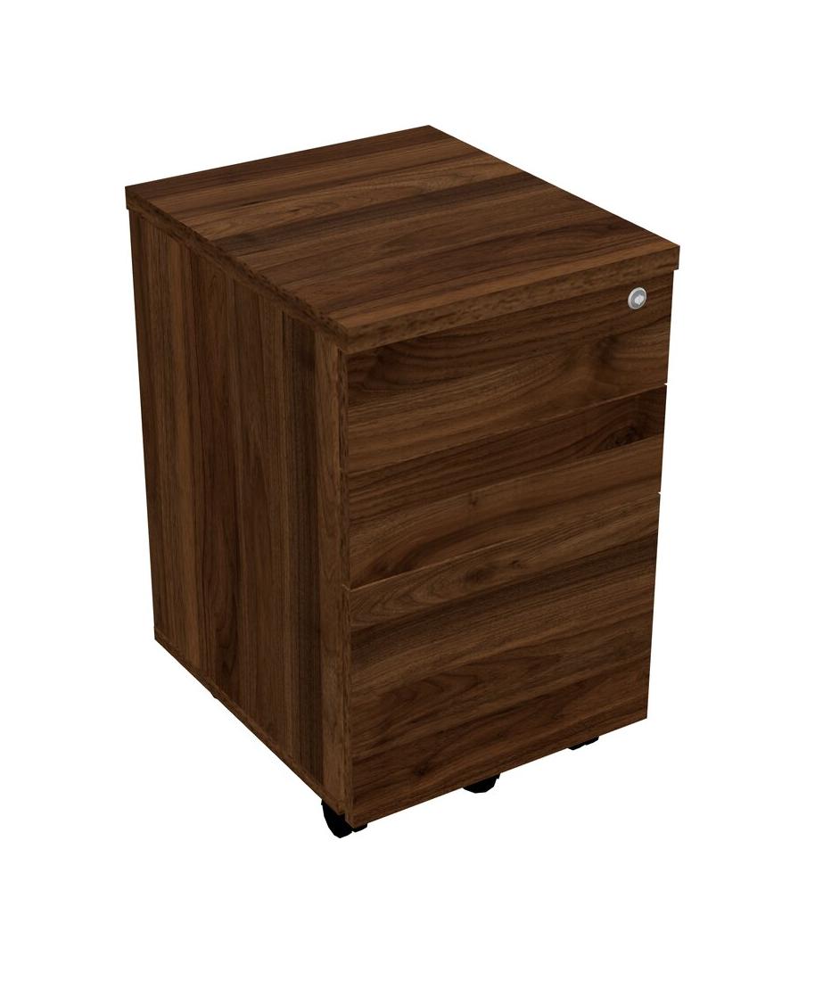 3-Drawer Columbia Walnut Wooden Office Mobile Pedestal File Cabinet