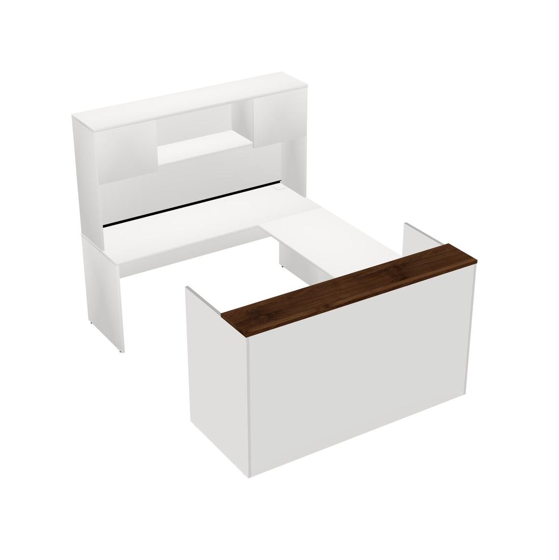 Columbia Walnut Modular Reception Desk + Wooden Mobile Drawers + Credenza Desk + Hutch