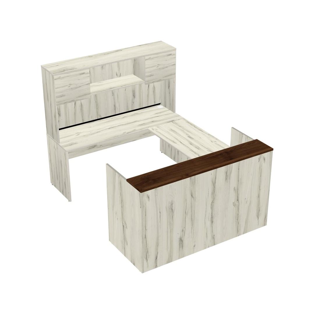 Columbia Walnut Modular Reception Desk + Wooden Mobile Drawers + Credenza Desk + Hutch