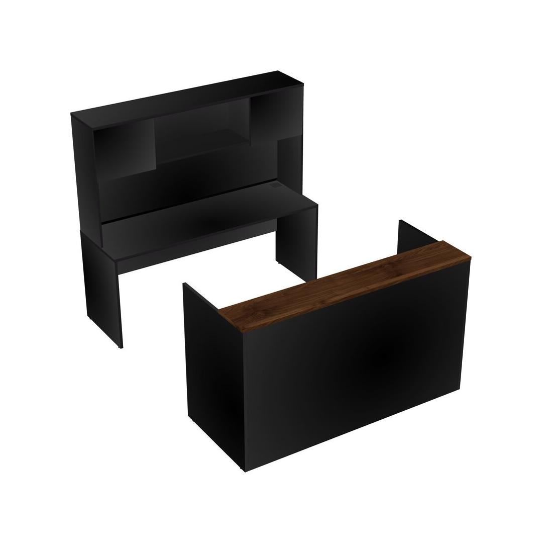 Columbia Walnut Modular Reception Desk + Credenza Desk + Hutch