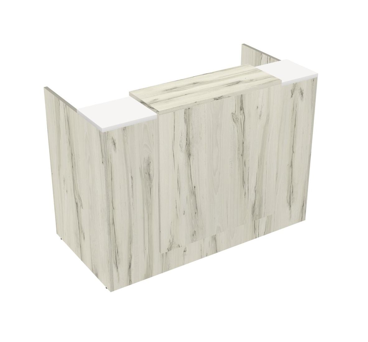 White Modular Reception Desk With Floating Counter And Wooden Mobile Drawers