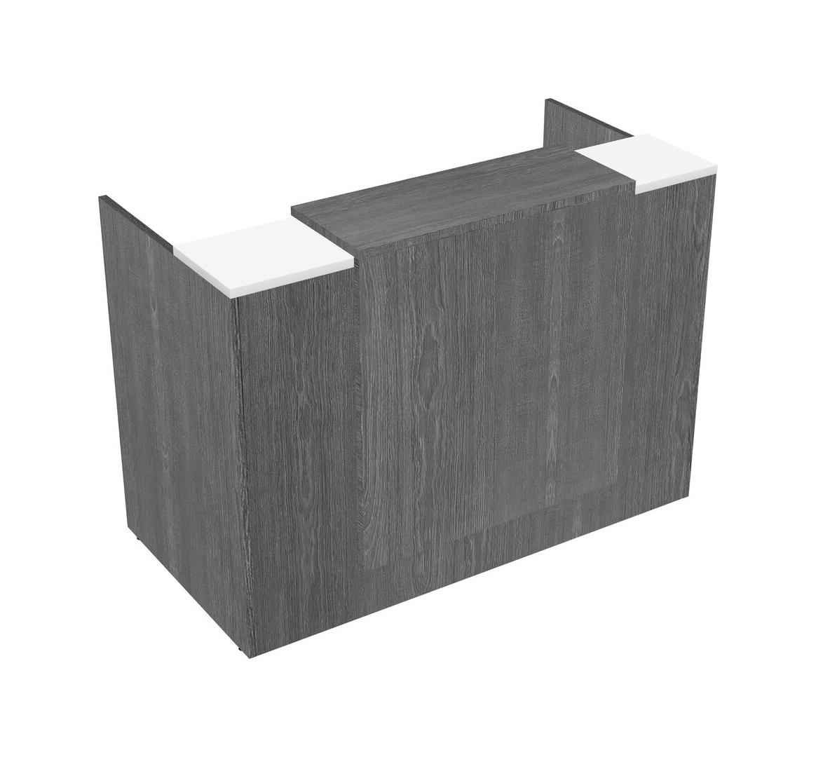 White Modular Reception Desk With Floating Counter And Wooden Mobile Drawers