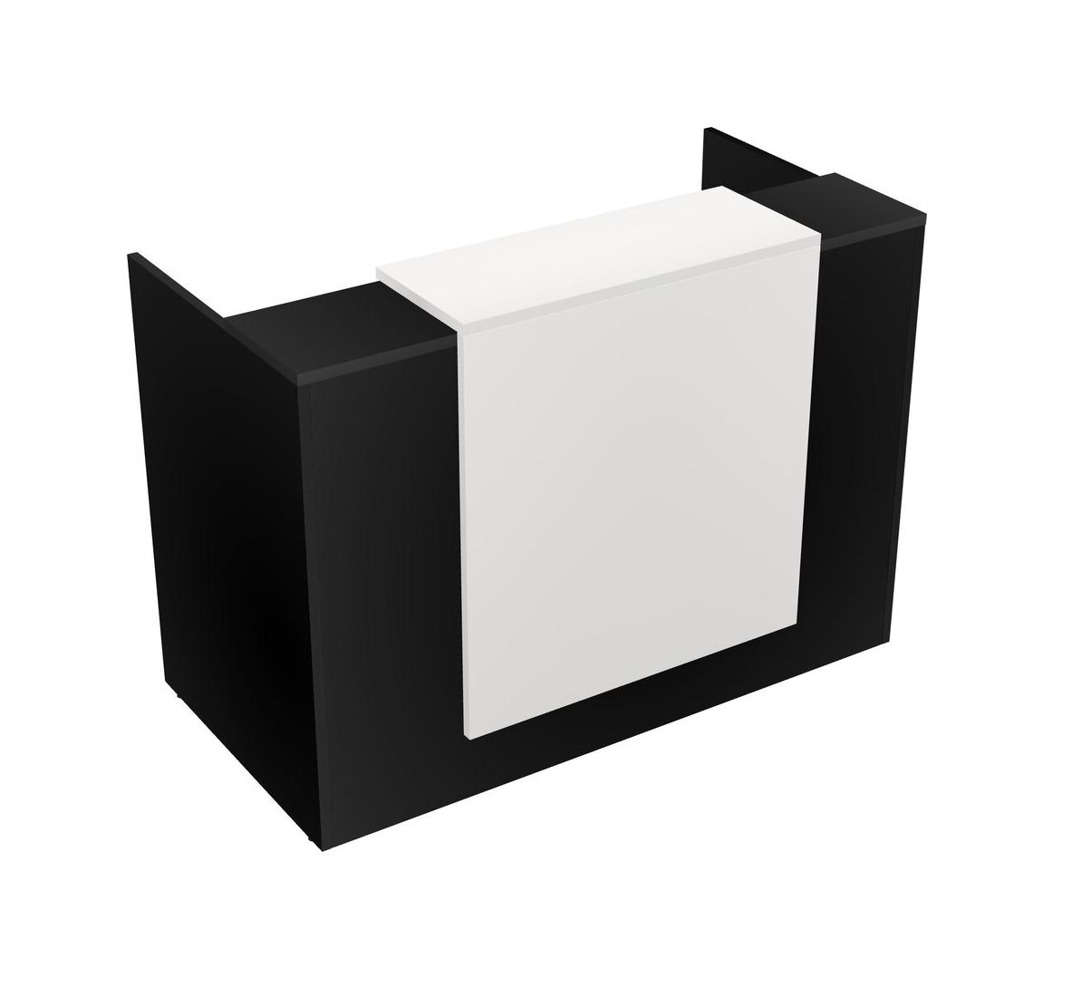 Black Modular Reception Desk With Floating Counter And Wooden Mobile Drawers